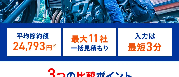 複数社の見積もり提示があり、相場感がつかめたこと。また保険料の安いバイク保険をすぐに確認できたのが良かった。